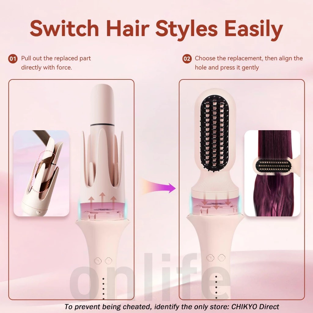 Muncul dengan 4 kepala gaya yang dapat diganti, yang dapat digunakan untuk membuat rambut lurus atau rambut keriting. Sangat mudah untuk beroperasi dan memberikan lebih banyak pilihan gaya!