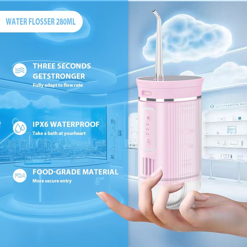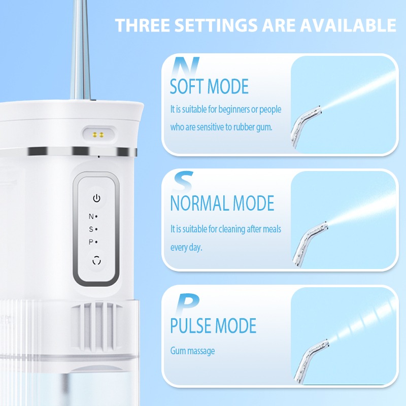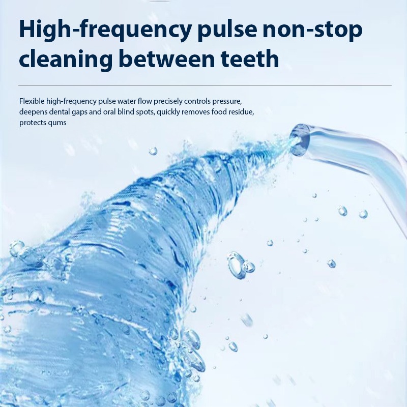 Ada bola gravitasi yang dipasangdi ujung hisap flosser,sehingga posisi pipa hisap berubah sesuai sudutnya flosser,memastikan Anda dapat menggunakan air terakhir denganlancar di setiap sudut.